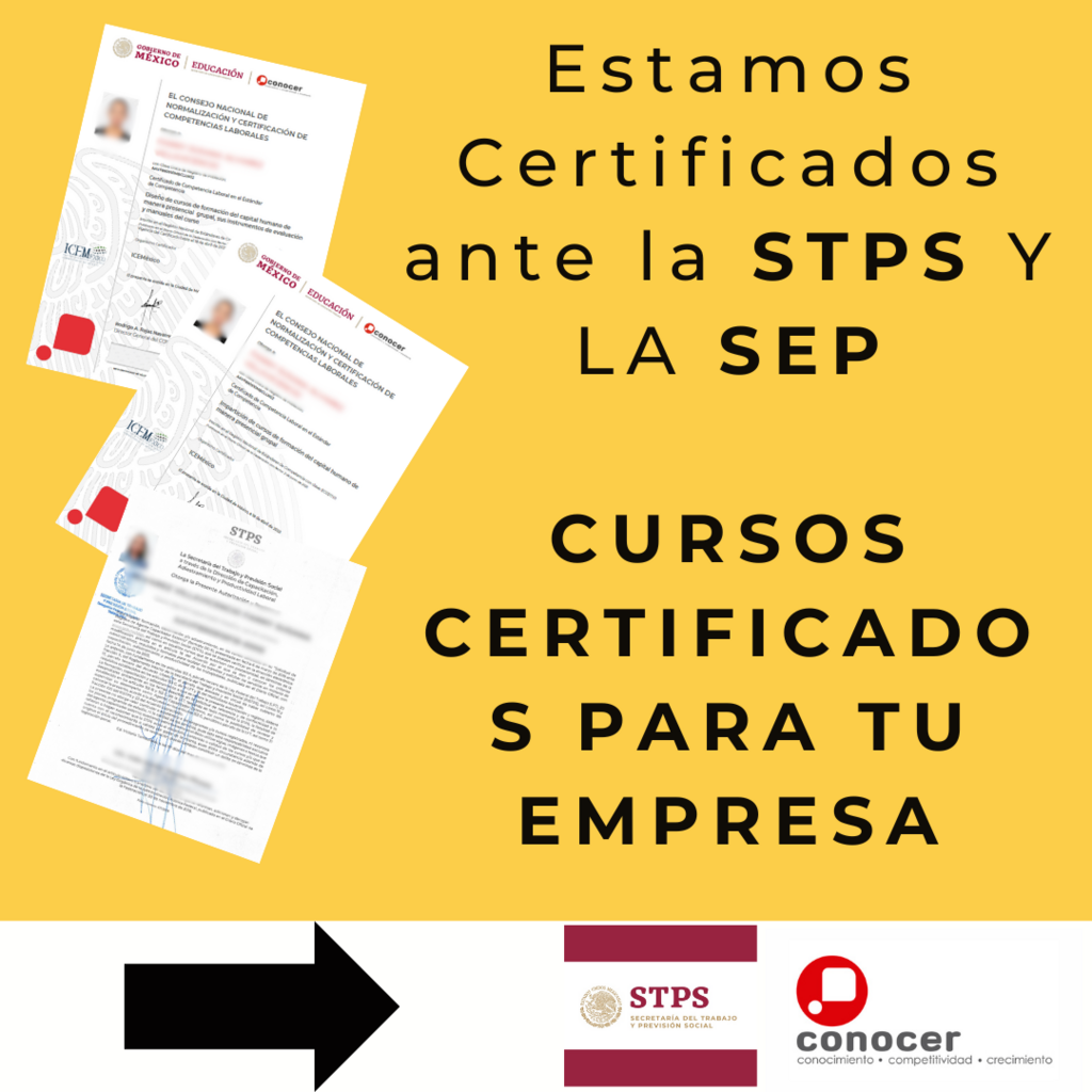 🎓 Contamos con certificación oficial como capacitadores ante la STPS y la Red Conocer de la SEP.